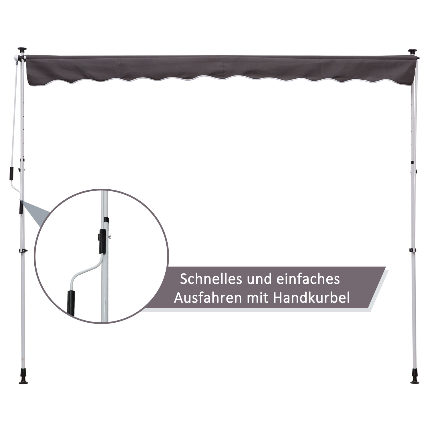 - FLEXIBEL: Mittels der Handkurbel fahren Sie Ihr Sonnendach unkompliziert ein und aus, Die Höhe der Aufstellstangen ist zwischen 1,7 - 2,8 m verstellbar, sodass Sie Ihre freistehende Markise flexibel platzieren können,