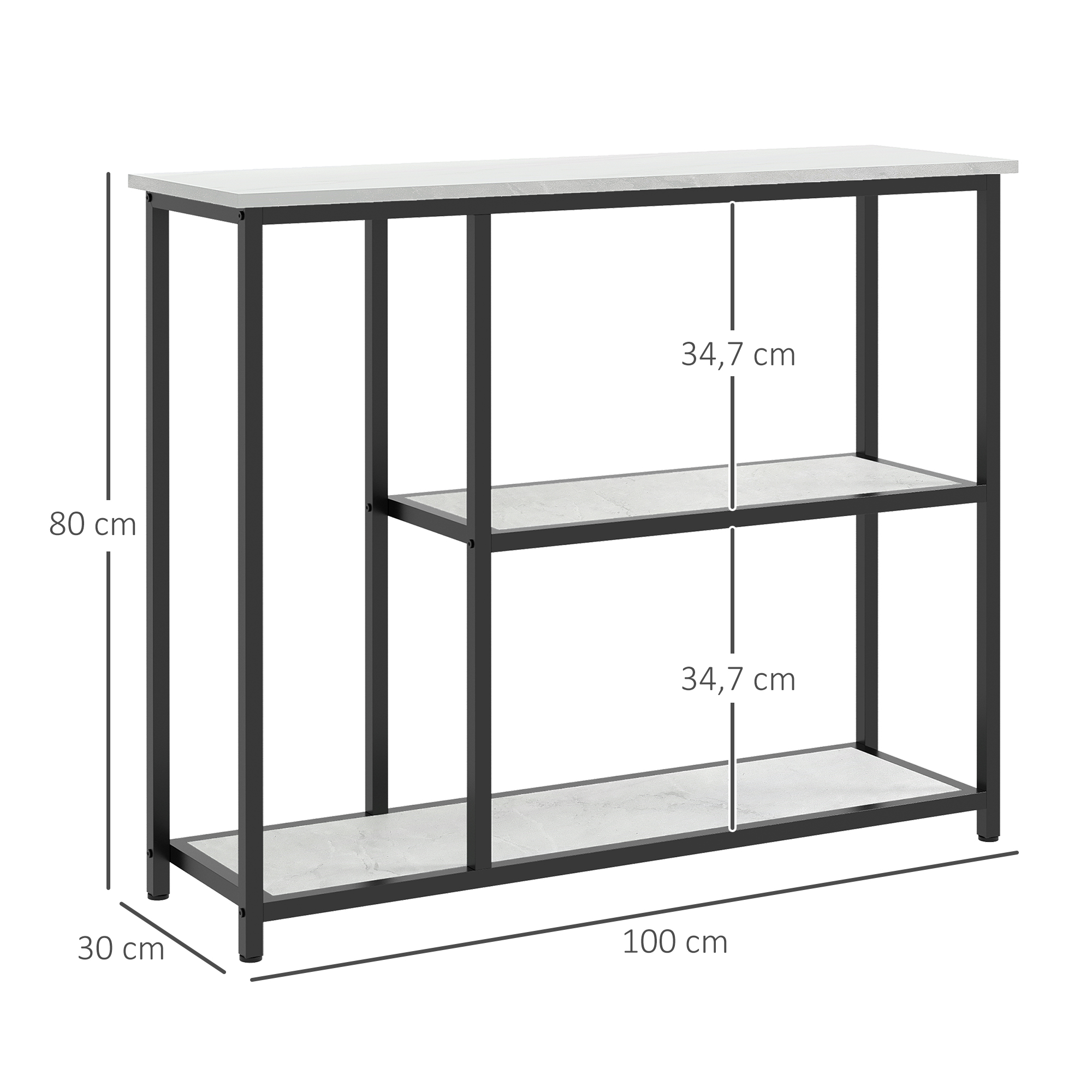Konsolentisch im Industriedesign, 2 Regale, Marmor-Optik, Schwarz + Weiß