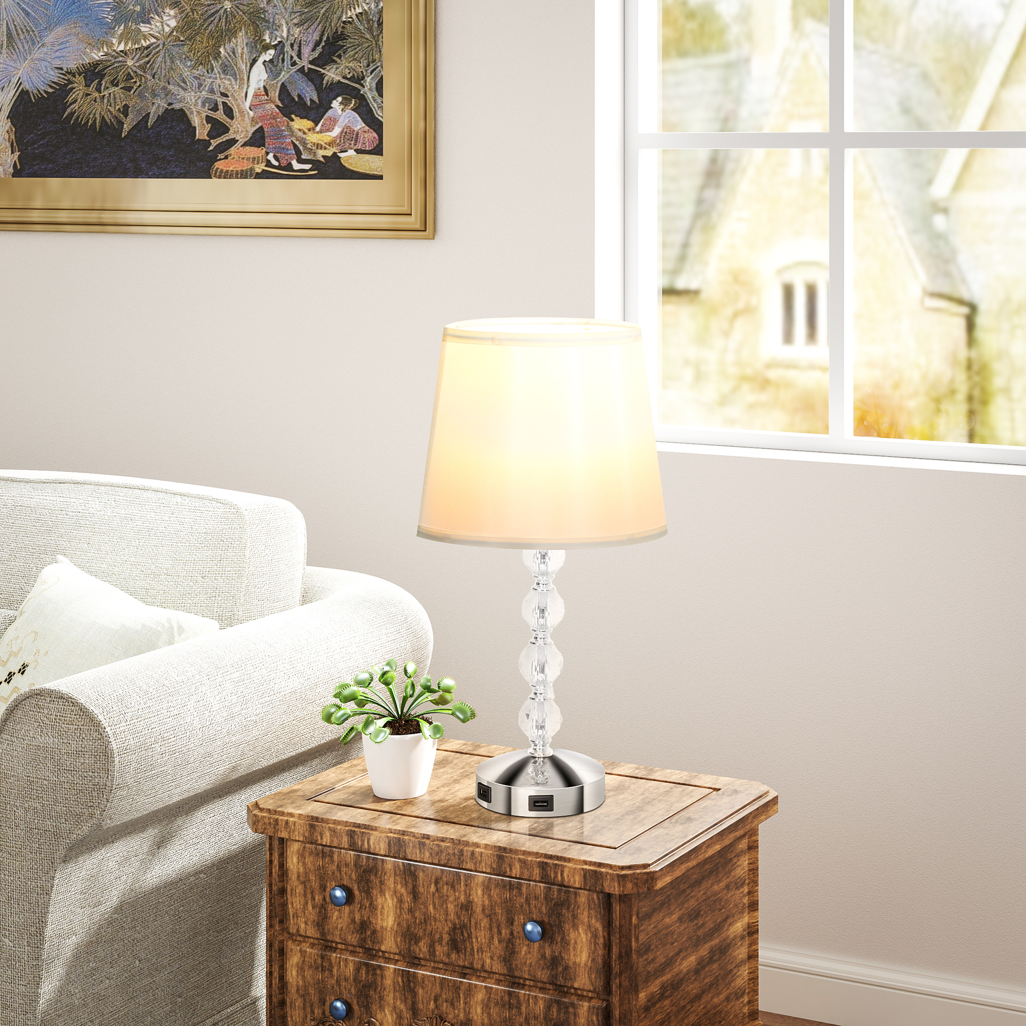 Kristall-Tischleuchte, Touch-Schalter, USB-Ladeanschluss, Ø23x45 cm, Silber