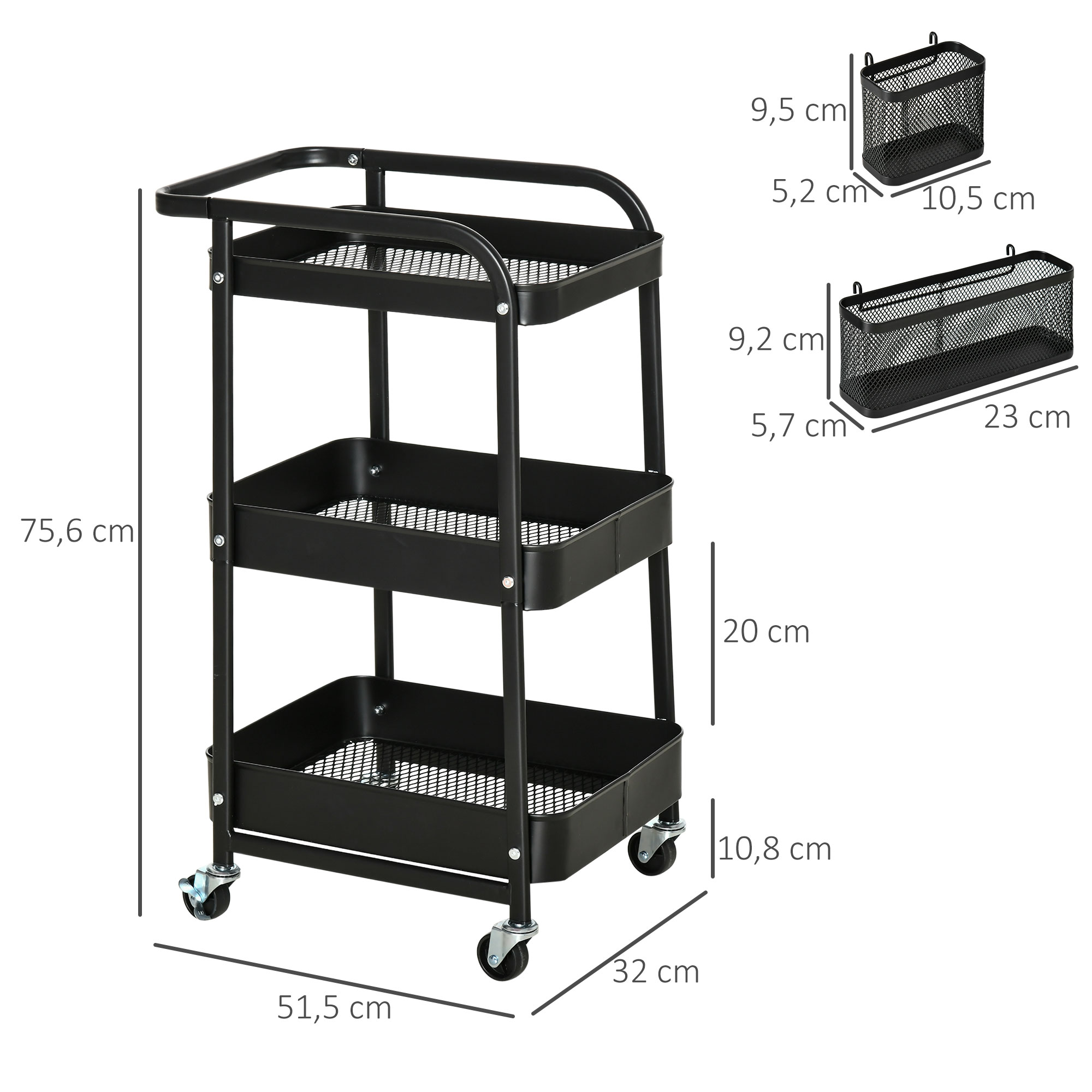 Küchentrolley mit Lochtafel, Handtuchhalter, Aufbewahrungskörbe, Schwarz