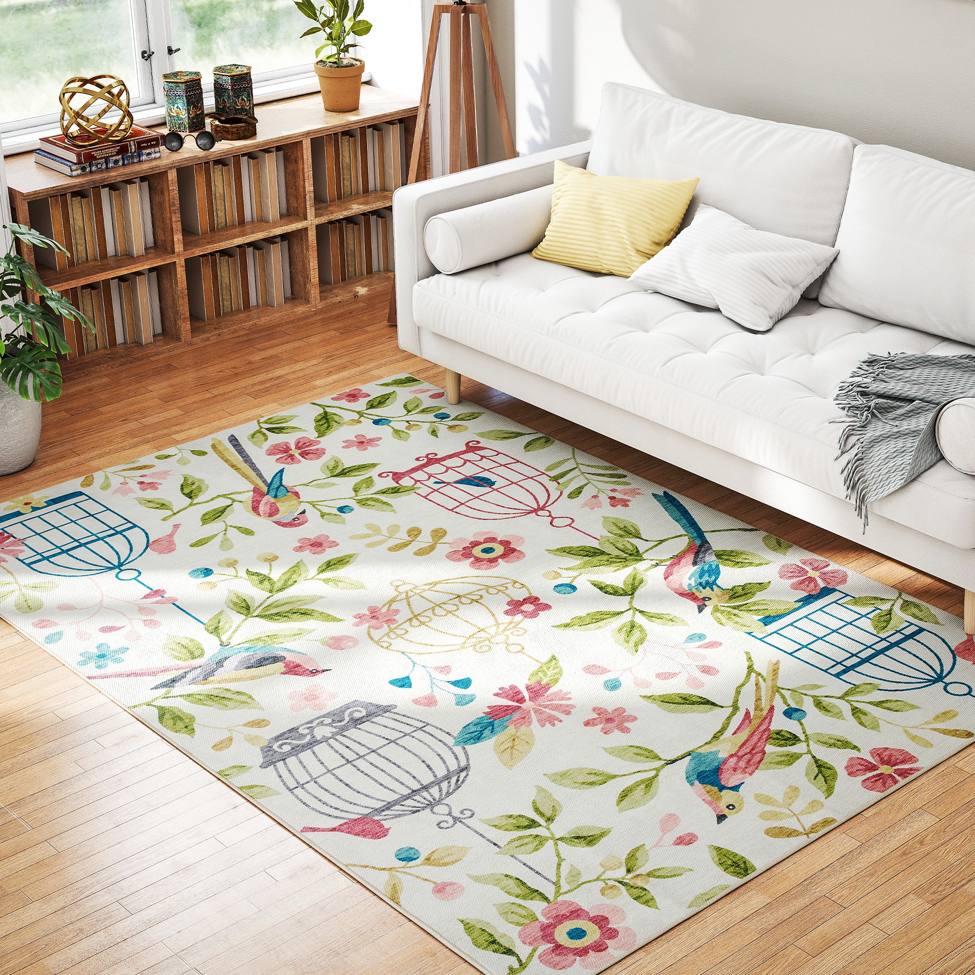 - Fröhliches Landhausdesign: Mit lebhaften Vögeln, Blumen und Vogelkäfigen auf einem zarten Cremehintergrund verleiht dieser Teppich Ihrem Zuhause mit seinem vielseitigen und einladenden Stil naturinspirierten Charme, Ideal für Wohn- und Schlafzimmer,