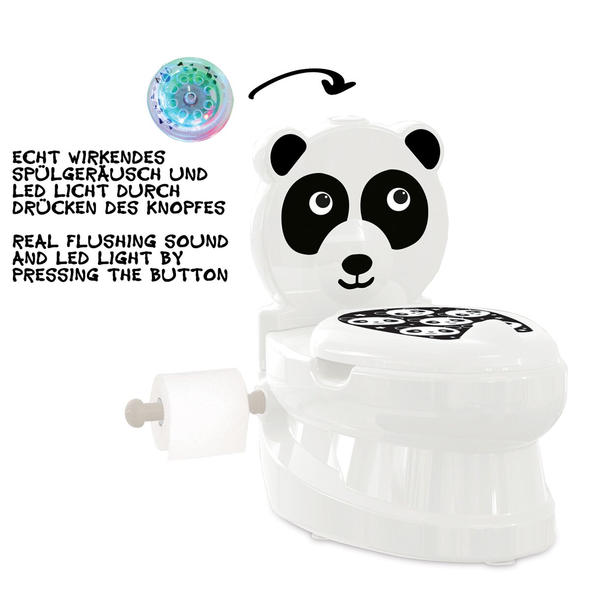 Produktinformationen "Meine kleine Toilette Panda mit Spülsound und Toilettenpapierhalter"