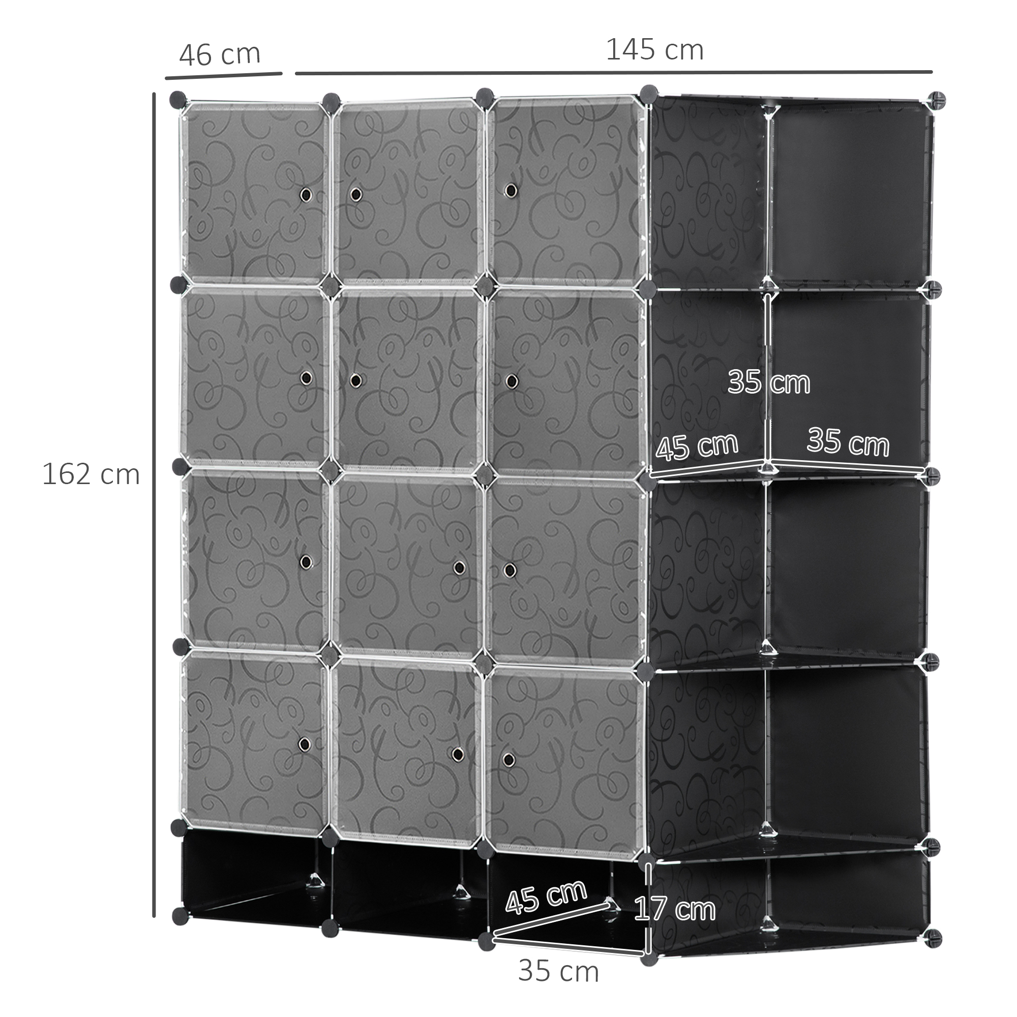 Modularer Aufbewahrungsschrank, Kleiderschrank, 16 Fächer, Kunststoff, Stahl