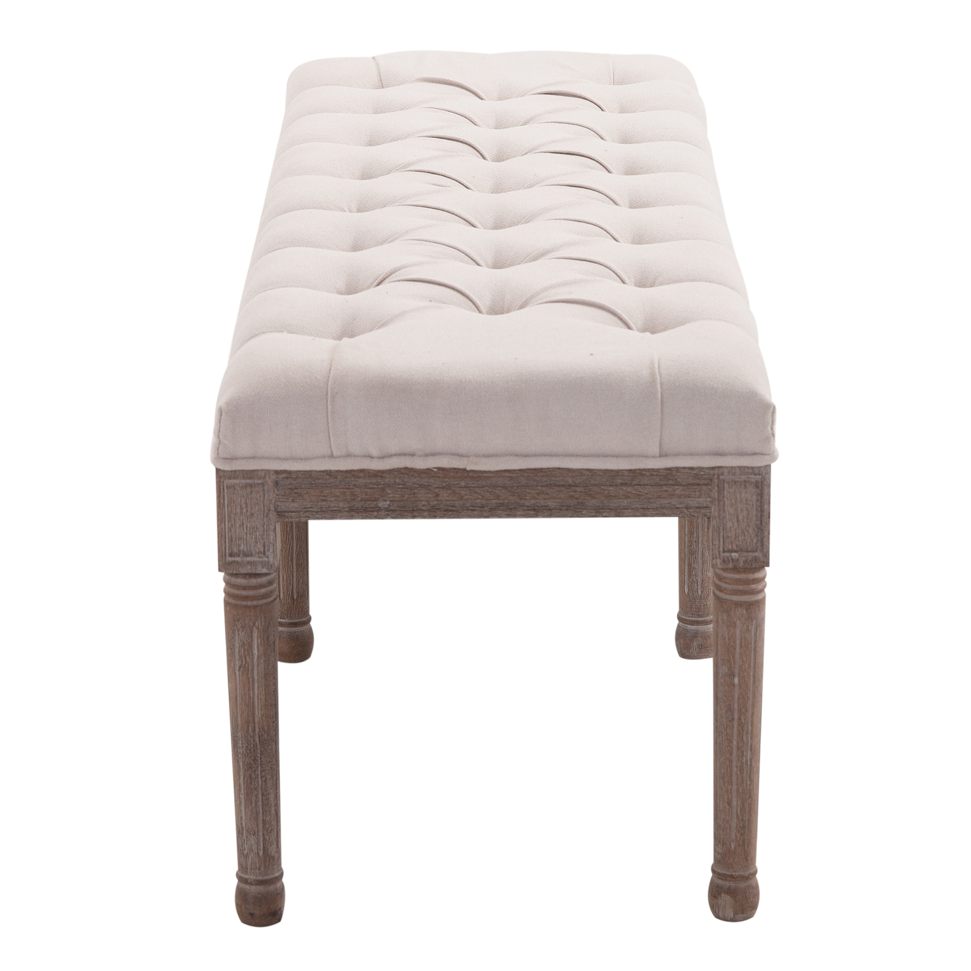 Produktinformationen "Polsterbank Sitzbank Lounge Sitzhocker Vintage Retro mit Knöpfen Leinen + Holz beige 142 x 47 x 51 cm"