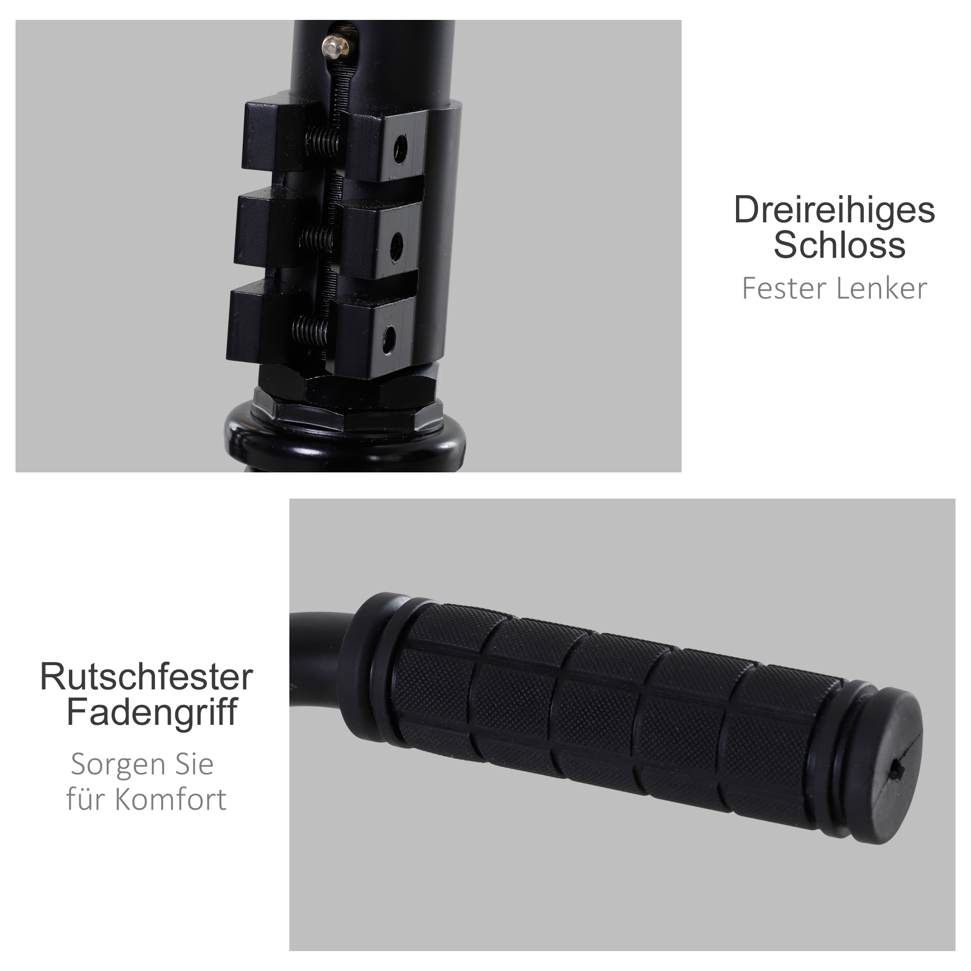 - Rutschfeste Griffe: Die Lenkergriffe sind mit einer rutschfesten Gummibeschichtung ausgestattet, die ein Abrutschen verhindert und Verletzungen vorbeugt.