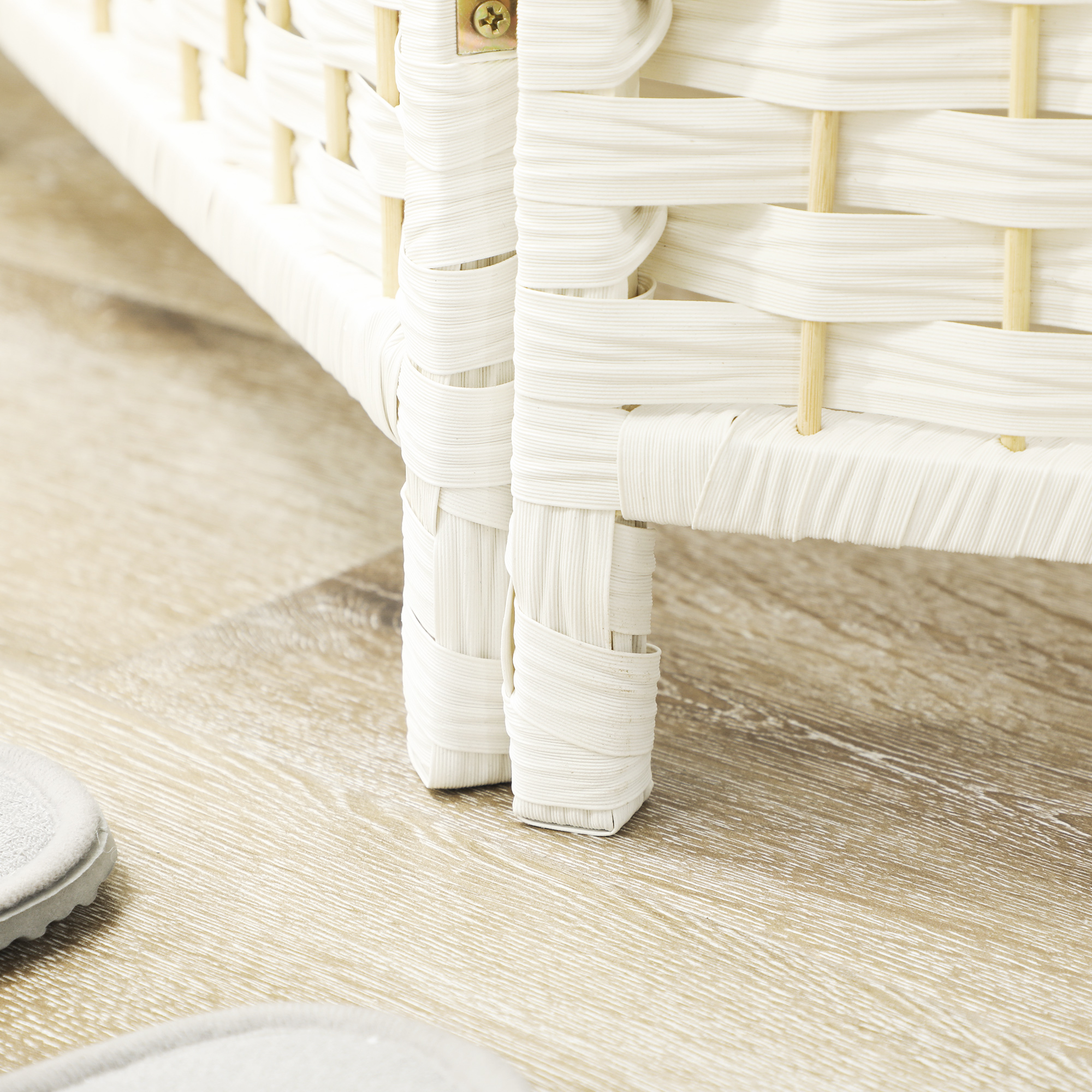 Raumteiler, 4-teilig faltbare Trennwand, Geflechtmuster, Kiefernholz, Weiß