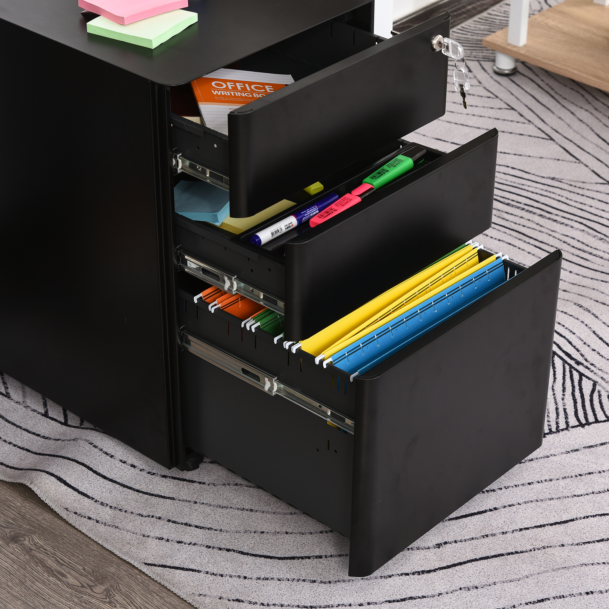 - Sichere Aufbewahrung: Die oberste Schublade des Rollcontainers ist mit einem Schloss ausgestattet, das alle drei Fächer gleichzeitig verschließt, Zwei Schlüssel sind im Lieferumfang enthalten, damit Sie immer einen zur Hand haben