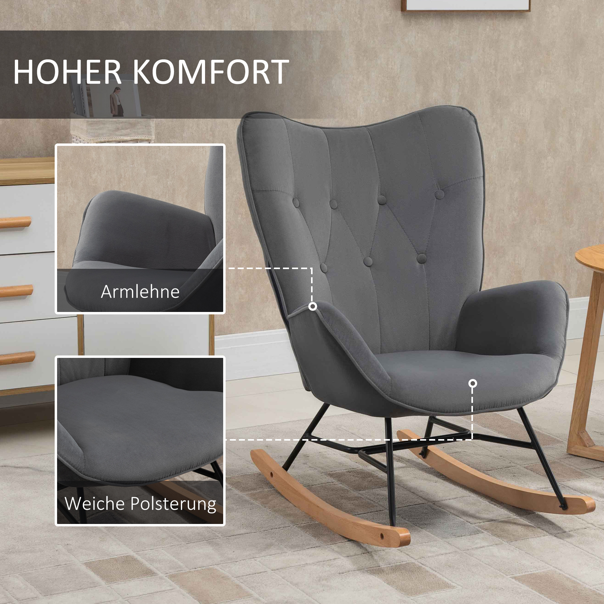 Schaukelstuhl mit Steppung, Holzkufen, Samtoptik, bis 150 kg, Dunkelgrau