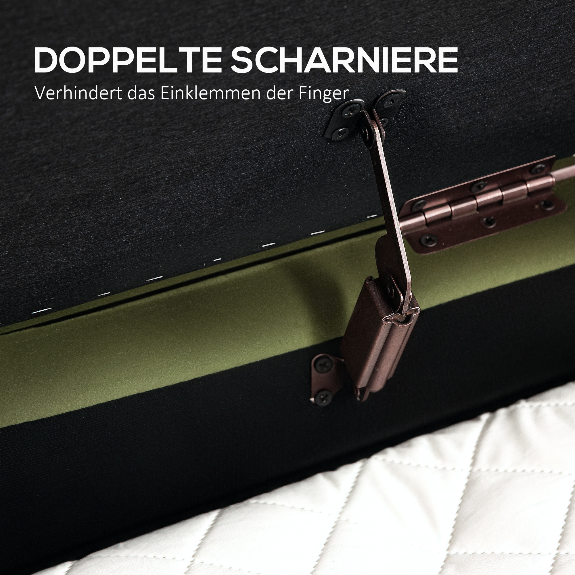Produktinformationen "Sitzbank mit Klappdeckel und Stauraum, Stoffbezug, Holz, Metall, Dunkelgrün+Goldfarben"