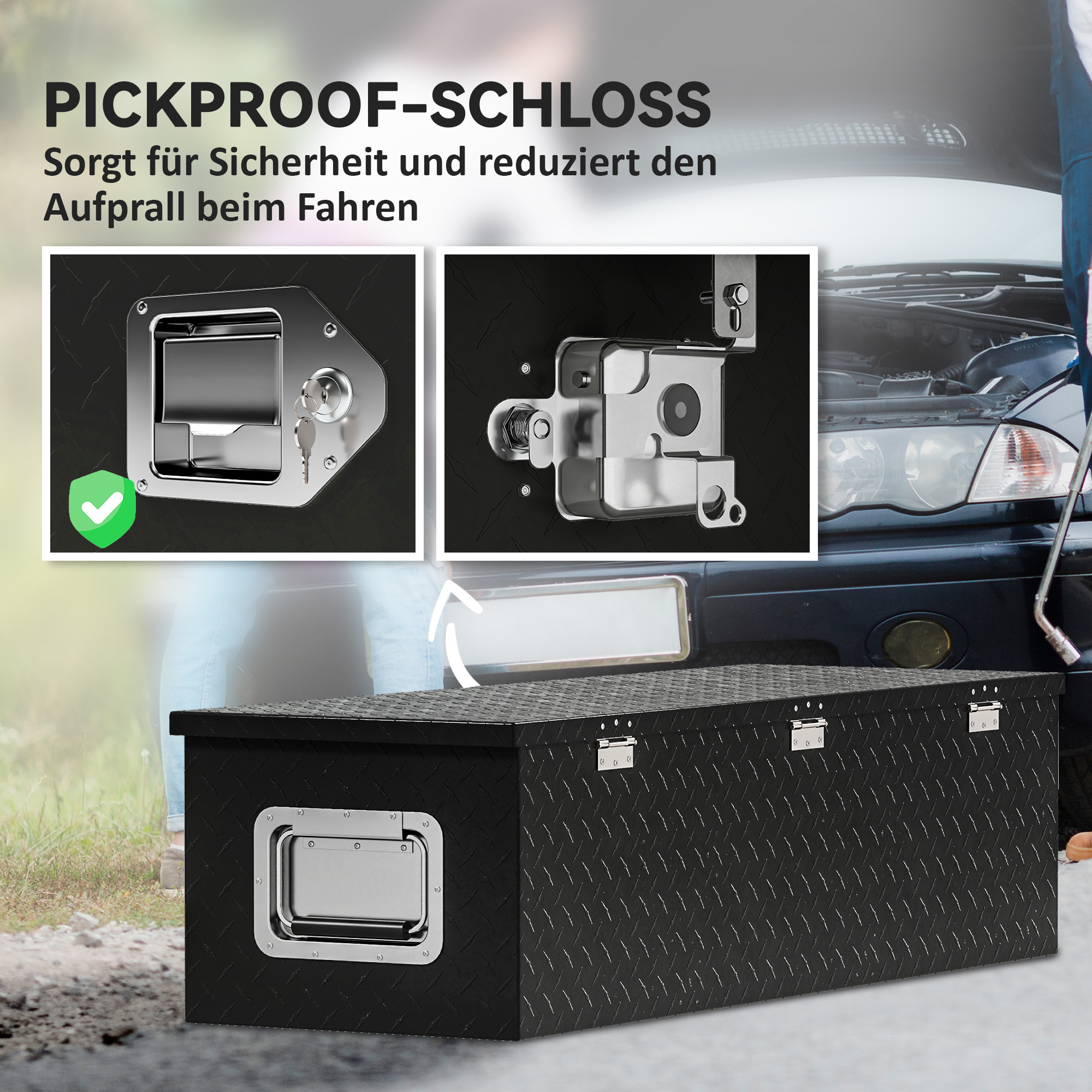 - Robust und leicht: Gefertigt aus verstärktem Aluminium-Diamantblech mit schützender Lackierung, bietet unsere LKW-Aufbewahrungsbox Widerstand gegen Rost, Korrosion und Verschleiß und ist dennoch leicht, um den Anhänger nicht zu beschweren