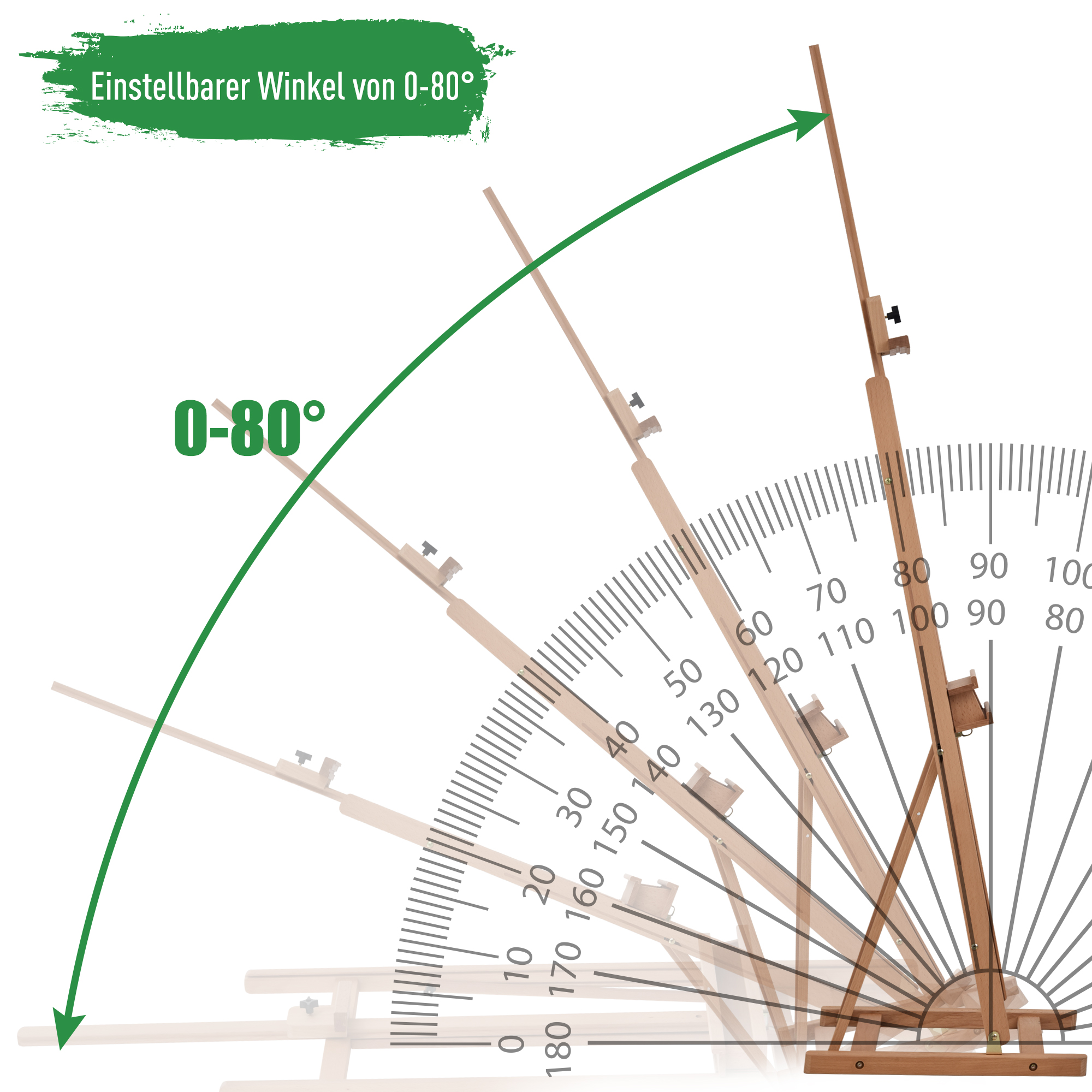 • Variabel: Bei dieser Staffelei können Sie den Winkel der Arbeitsfläche Ihren Bedürfnissen anpassen,