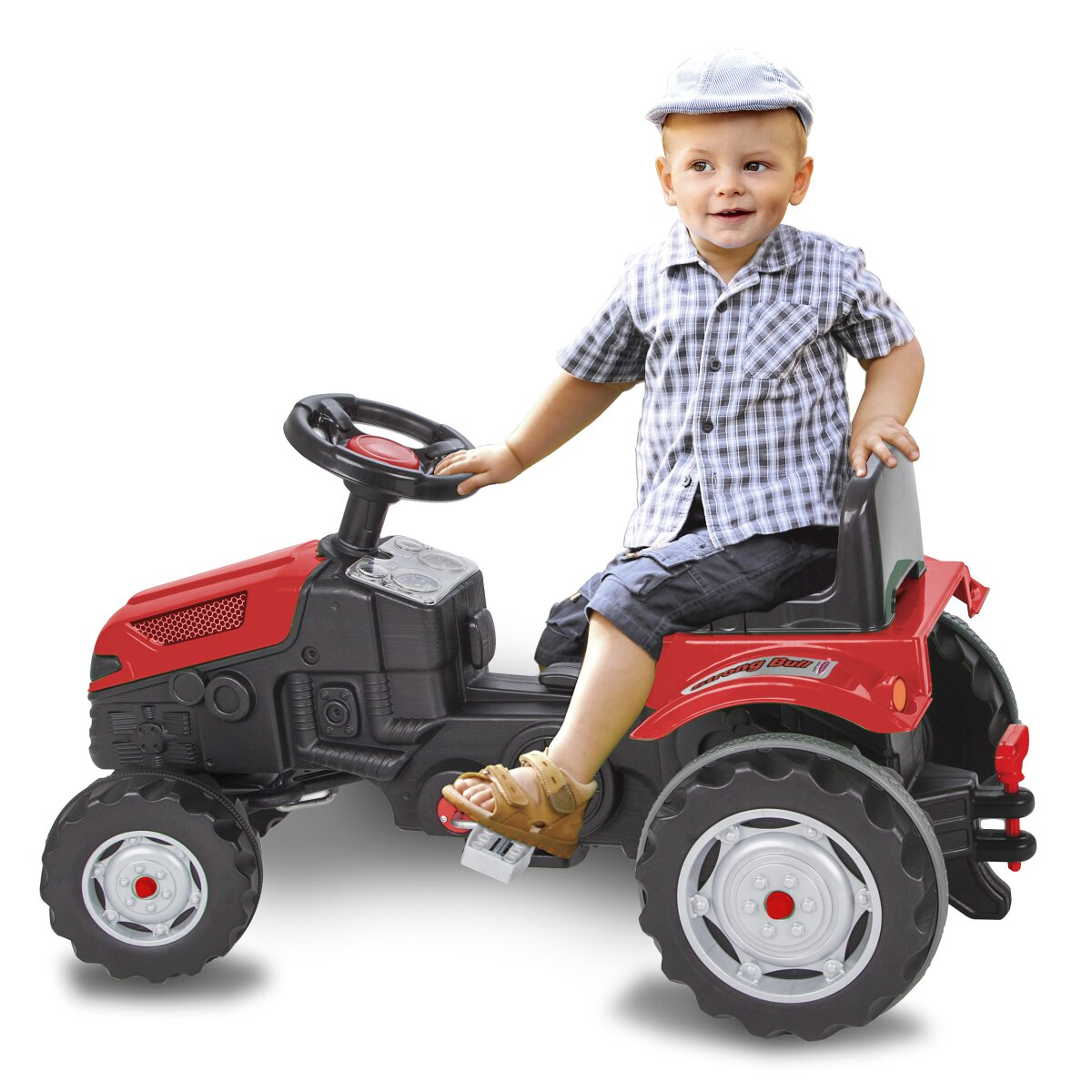 Die Trettraktoren von JAMARA erfreuen sich seit der Markteinführung großer Beliebtheit. Einfach aufsitzen und lostreten und schon kann die wilde Fahrt beginnen. Der Trettraktor Strong Bull in zwei kindgerechten Farben, hat ein leichtgängiges Lenksystem und einen verstellbaren Sitz und dann so über die Jahre mitwachsen und angepasst werden. An die praktische Anhängerkupplung am Heck können verschiedene Anbaugeräte angebracht werden z.B. der stabile Anhänger von JAMARA für den Strong Bull.